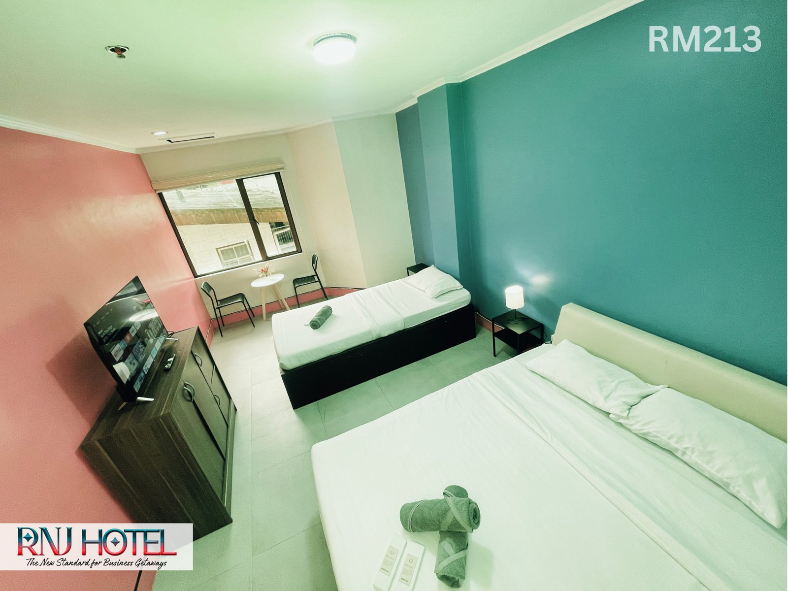 This is Room 107 at RNJ Hotel, designed for groups or families looking for comfort and convenience during their stay in Baguio City. The room features: